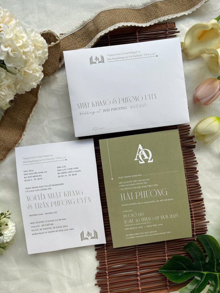 - ✅ Hỗ trợ in 2 nội dung: Thuận tiện cho việc mời khách Nhà Trai – Nhà Gái riêng biệt mà không lo nhầm lẫn.