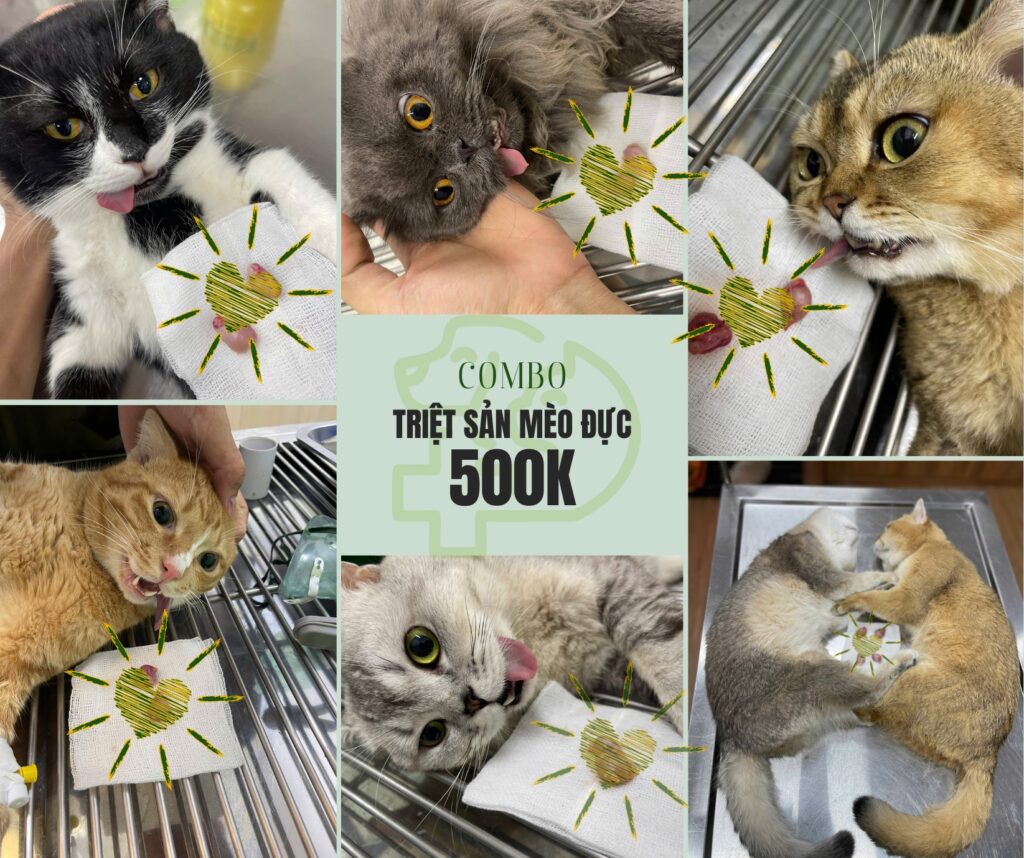 Phòng khám đã chuẩn bị sẵn gói Combo đầy đủ từ xét nghiệm đến hậu phẫu để bé “vượt vũ môn” nhẹ nhàng nhất: 🔹 Mèo đực: Xét nghiệm sinh lý + Triệt sản + Thuốc hậu phẫu 3 ngày. 🔹 Mèo cái: Test ký sinh trùng & soi máu + Triệt sản + Thuốc hậu phẫu 5 ngày.